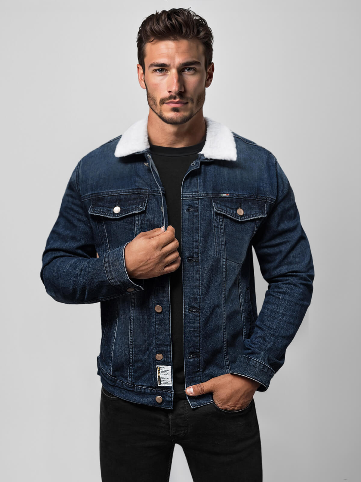 Men's Denim Jacket Sherpa Navy Blue OZONEE NB/MJ517BSZ